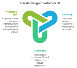 Dla firm 5G to szansa na tworzenie natychmiastowych, interaktywnych doświadczeń. Przykładem mogą być transmisje live w jakości 8K, wirtualne showroomy czy gry multiplayer działające bez opóźnień. Marketing zyskuje możliwość wdrażania formatów reklamowych, które wcześniej były zbyt ciężkie lub za wolne.